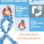 RDV le 25 mars de 8h30 à 15h au CHOR au stand de prévention et d’information où nos équipes se tiendront à votre écoute pour répondre aux questions sur le cancer colorectal, son dépistage et les bonnes pratiques de prévention